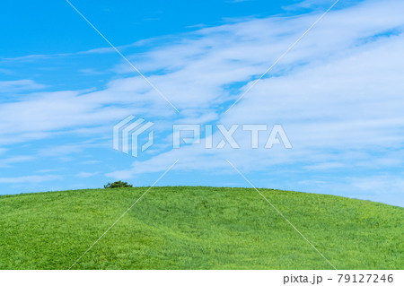 草原と青空の写真 青い空・白い雲