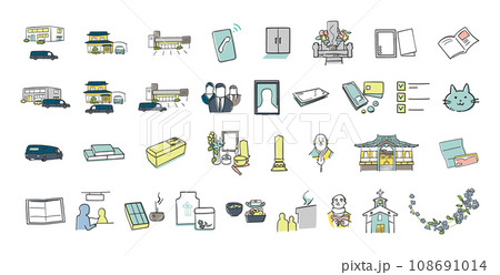 葬儀にまつわるラフなアイコン セット イラスト素材