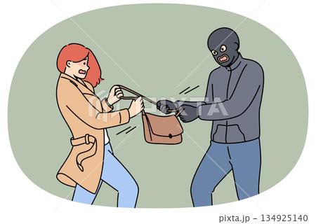 Masked robber takes bag from frightened woman who screams for help from police or passers-by