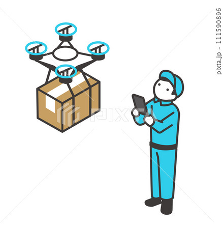 ドローンで荷物を配達する作業員のアイソメベクターイラスト素材