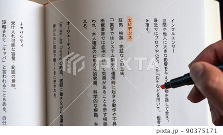 会社で働くサラリーマン 社会人の職場 専門・ビジネス用語(エビデンス)黄色