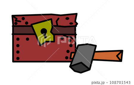 金銀や財宝が保管される頑丈な宝箱を破損させたイラスト