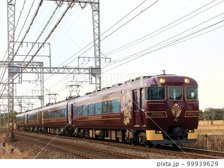 世界遺産奈良平城宮跡内を走行する近鉄「観光特急 あをによし」