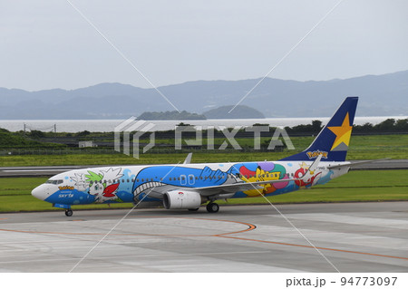 長崎空港をタキシング中のスカイマーク『ピカチュウジェットBC2 特別塗装機』