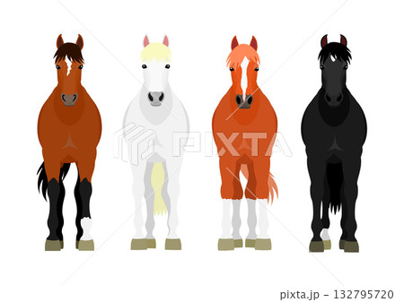 いろいろな種類の馬の前後のセット4、カートゥーン