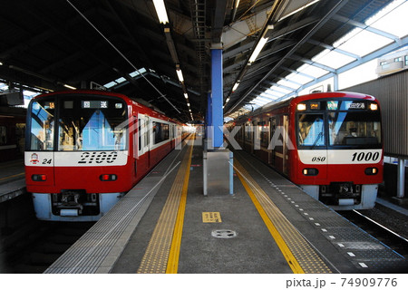 京急久里浜駅での「赤い電車」の並び