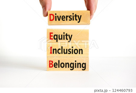 DEIB diversity equity inclusion belonging symbol. Concept words DEIB diversity equity inclusion belonging on blocks. Beautiful white background. Business diversity equity inclusion belonging concept.