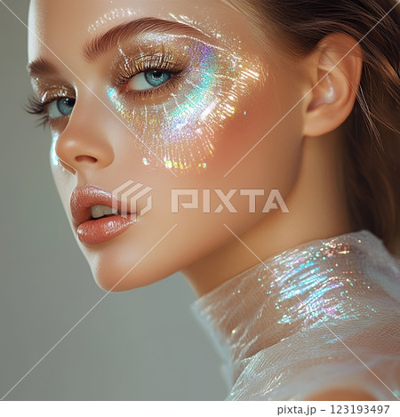 妖精の様な特殊ヘアメイクスタイルの可愛い美人女性を生成AIで表現(スクエア写真)