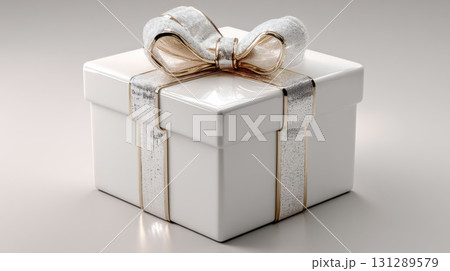 Festive packaging concept. Beautifully wrapped white gift box with shimmering silver ribbon and bow