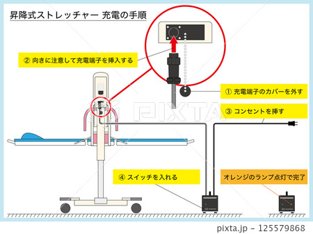 【医療・福祉】入浴用の昇降式ストレッチャーの充電手順