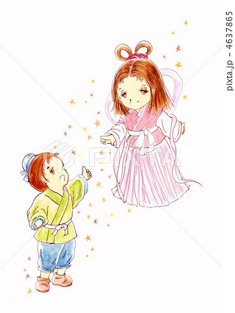 可愛い彦星と織姫がいる七夕をイメージしたイラスト