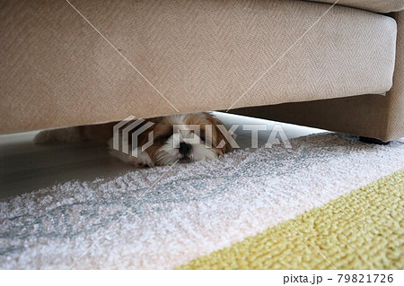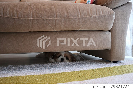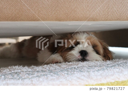 寝顔が可愛いソファの下で昼寝するわんこ(シーズー、5ヶ月)