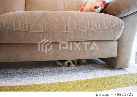 ソファの下がお気に入りのわんこ(5ヶ月)