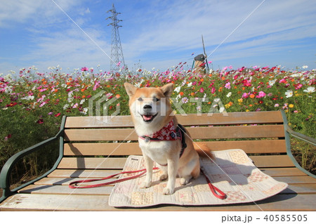 笑顔の柴犬とコスモス畑(佐倉ふるさと広場)
