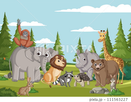 Joyful Animals in a Forest Clearing