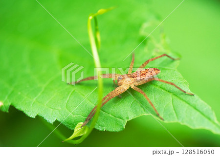 生き物 蜘蛛 ヤハズハエトリ、ヨシの葉の上で一休み