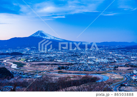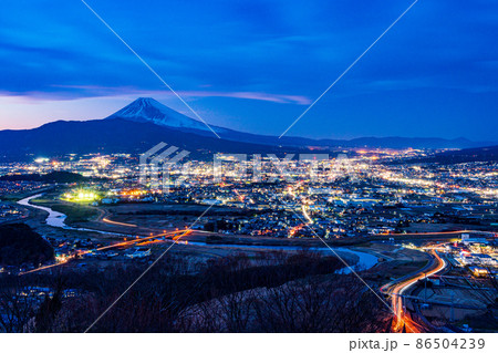 【静岡県】三島市周辺の街並みと富士山 トワイライト夜景