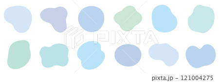 抽象的な形 変形 素材 セット 寒色 青 水色 黄緑