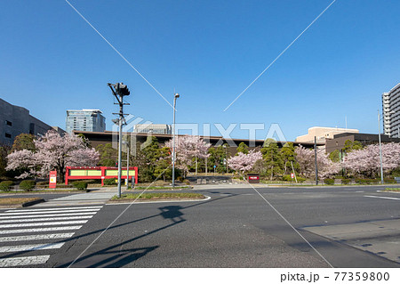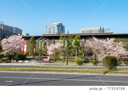 東京都千代田区隼町の国立劇場と内堀通りの満開の桜並木