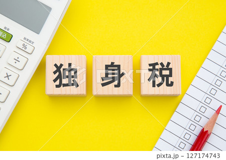 独身税スタートを示すブロックと電卓のイメージ。