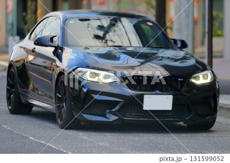 ジャーマンコンパクトカー 青色 自動車イラスト ジャンプ