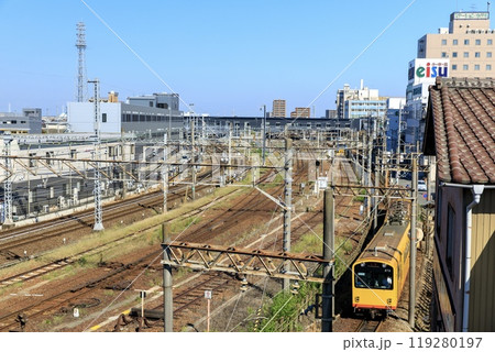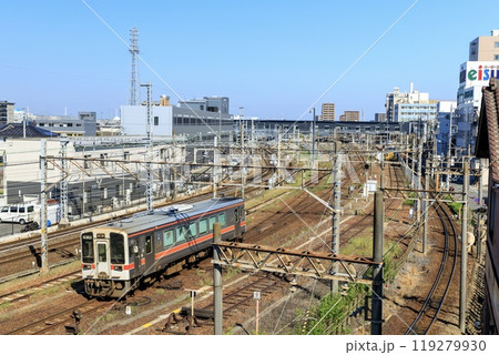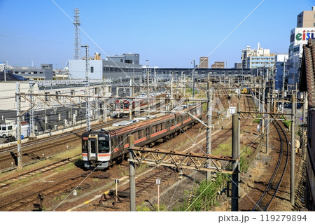 桑名市、桑名駅付近の3種類の異なる線路幅が並ぶ区間