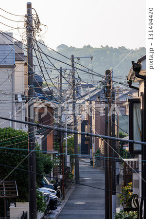 住宅街の細い道と密集した電線