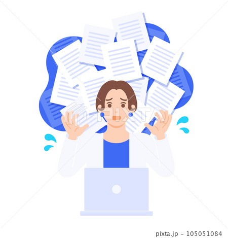 データが膨大で処理しきれない。混乱している女性のイラスト素材。
