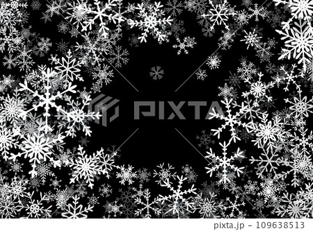 Christmas background with falling snowflakes. Winter holiday background or frame with pattern of layered snow.