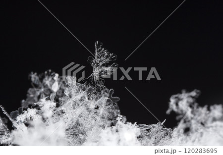 natural snowflakes on snow. the picture is made at a temperature of-10 C