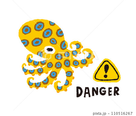 注意喚起する海洋危険生物ヒョウモンダコ【キャラクター】の手描きイラスト