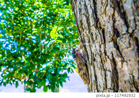 日本の横浜都市景観 夏の終わり…立秋が過ぎたが、厳しい暑さが続く…街中のセミは低い所に…8月17日