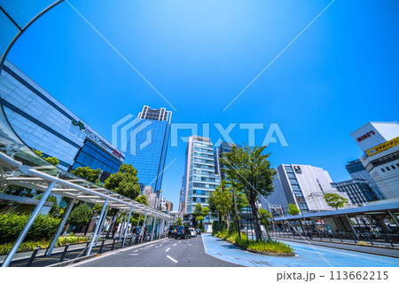 日本の川崎都市景観 夏。猛烈な暑さ、川崎駅やタクシー乗り場のソーラーパネルなどを望む=7月26日