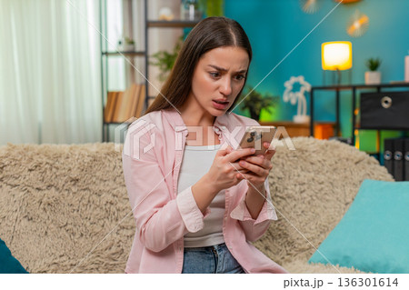 Young woman angrily texting on smartphone waving hand frustrated by chat messages and visible dismay