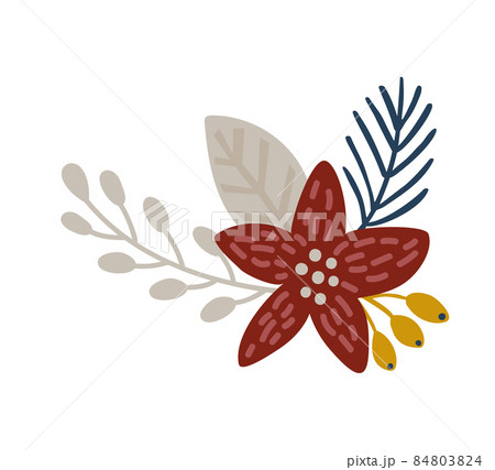 Hand drawn vector abstract graphic Merry Christmas and Happy new year clipart illustrations greeting card with flowers and leaves.Merry Christmas cute floral card design background.Winter holiday art.