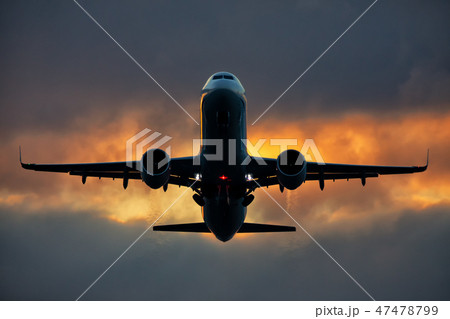 雲間から漏れる幻想的な朝の光の中をテイクオフするA320