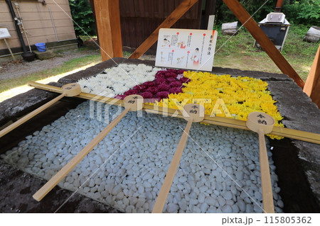 新緑の福島県猪苗代町の土津神社の手水舎