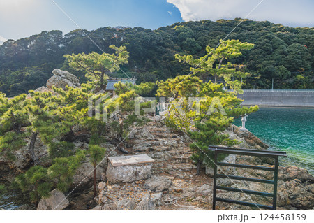 浜松市にある新緑に包まれた猪鼻湖神社の風景(静岡県)