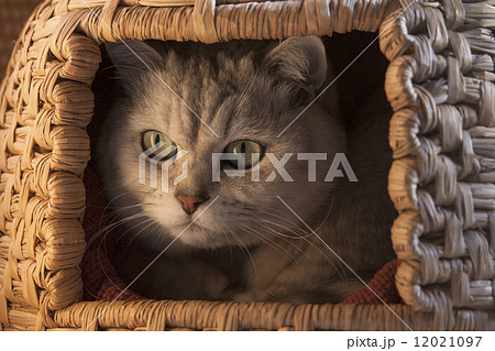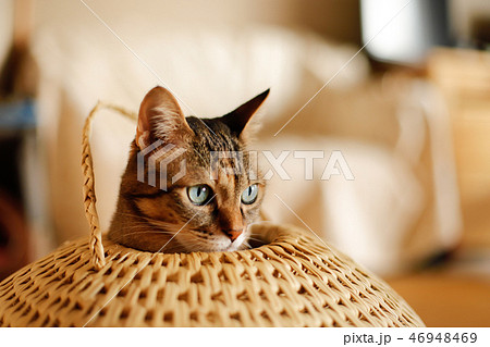 つぐらから顔を出す猫