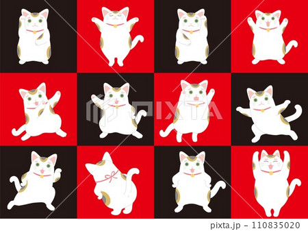 招き猫_三毛猫まねき猫_セット_赤黒背景あり