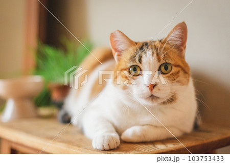 室内飼いの可愛い三毛猫