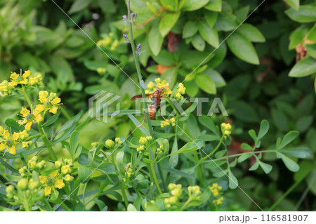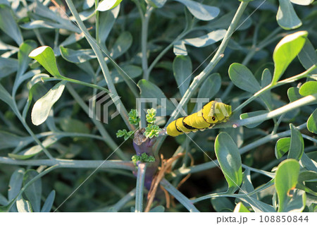 ヘンルーダに止まるアゲハの幼虫、イメージ