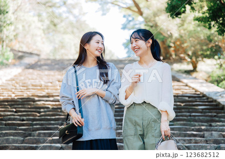 奈良を観光する女性二人組