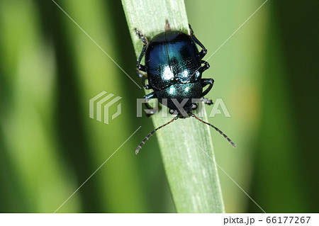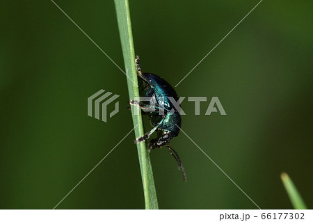 生き物 昆虫 イモサルハムシ、初夏の頃から目につき始める金属光沢が眩しいサルハムシ