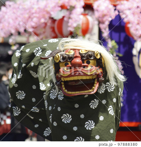 背景付きの獅子舞