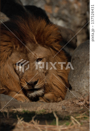 雄ライオンの表情(動物園)