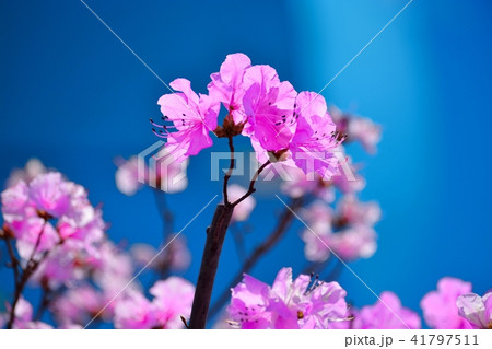 花の背景素材・ゲンカイツツジの花・青バック縦位置