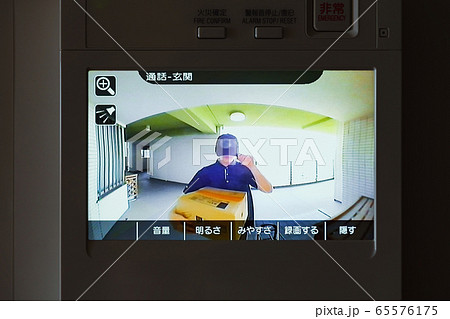 配達 デリバリー インターホン モニタ 小包 監視 配達員 女性 人物 日本人 コロナ 外出自粛