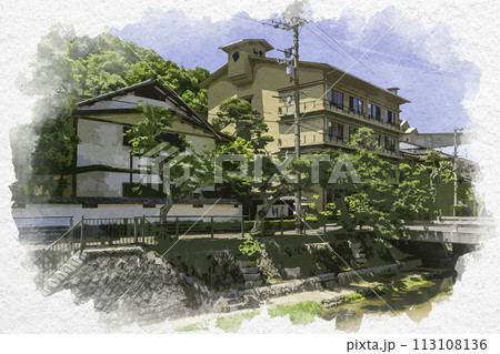 水彩画風 玉造温泉 玉湯川 島根県松江市