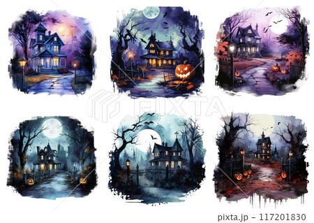 Spooky Halloween gate with glowing pumpkins and eerie fog